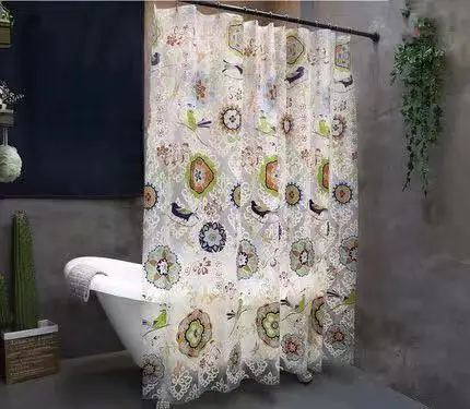 American Retro Shower Curtain Waterproof Thickening, Mildew Bathroom Shower Curtain Batik Flowers And Birds