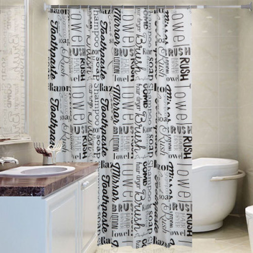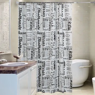 Black And White Simple Pattern Shower Curtain,Bathroom Shower Curtain English Letters Waterproof Mildew Thick Warm Bathroom/