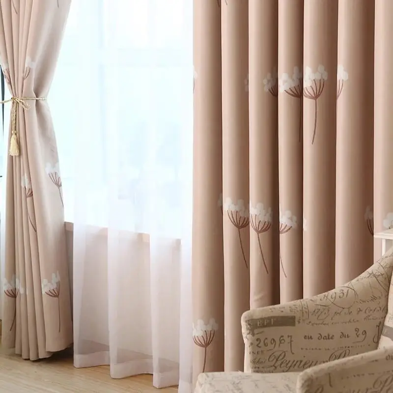 Curtain Fabric Blackout Embroidery Curtain,Simply Design Living Room Curtains#