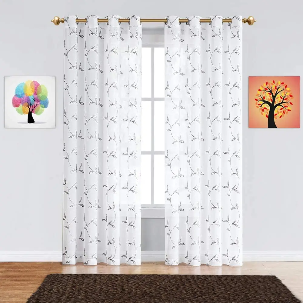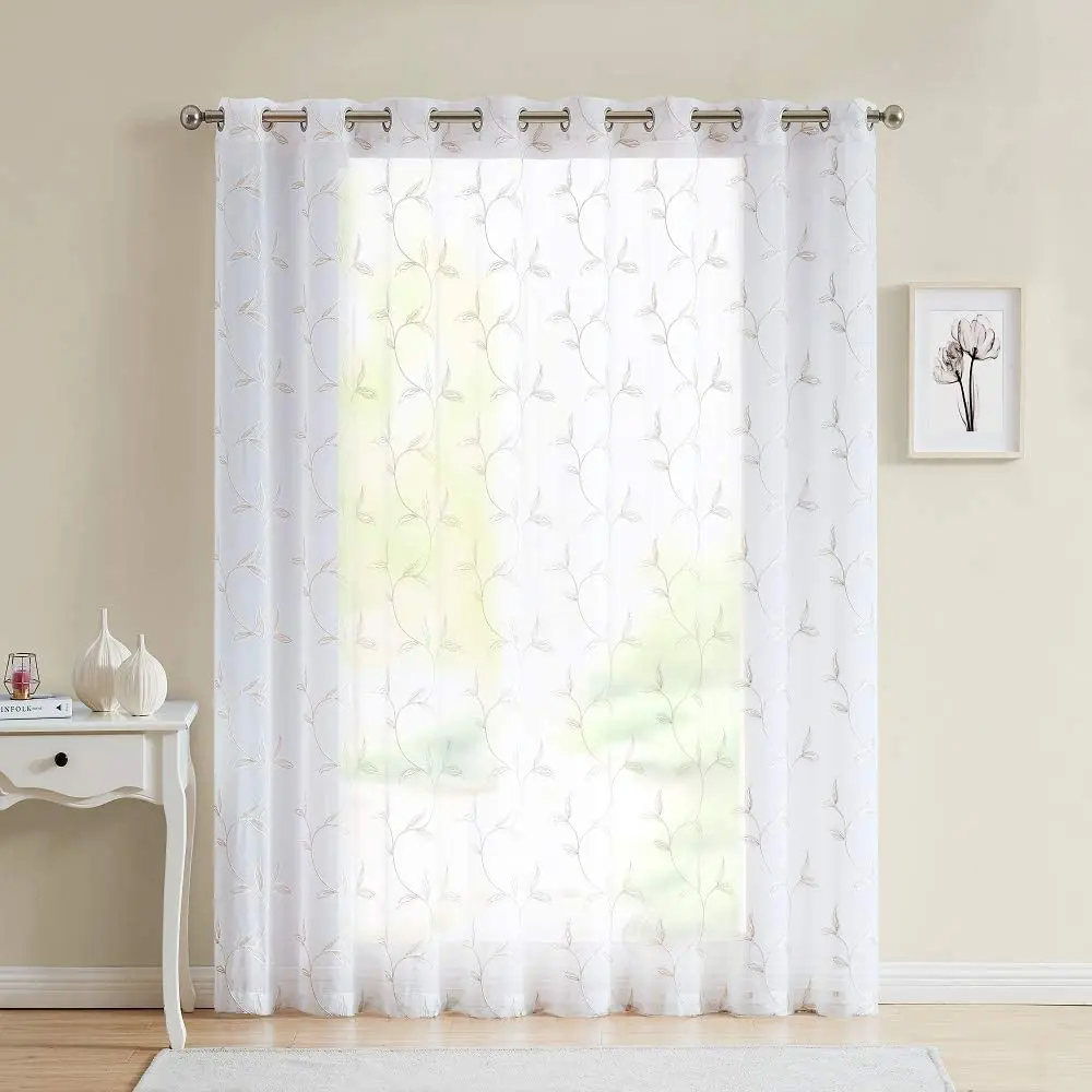 | Item Name | Grommet Drape 54" x63" Light Brown Leaf Emboriered Curtain, Warm Home Design Faux-Linen Curtain/ |