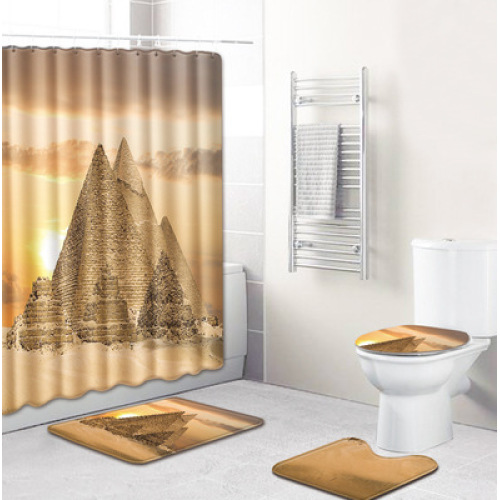 Nice And Colorful Shower Curtain ,Egyptian Bathroom Toilet Four-Piece Floor Mat Door Mat Bathroom Carpet/