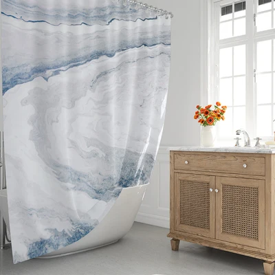 Nordic Blue Marble Bathroom Shower Curtain, Polyester Waterproof Mildew Thickening Shower Curtain Bathroom Cover/