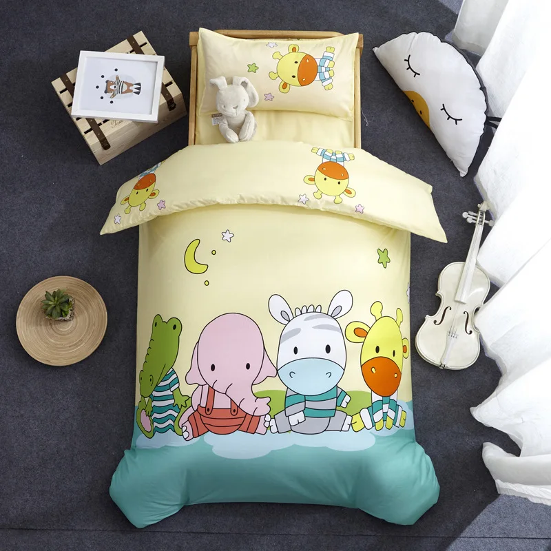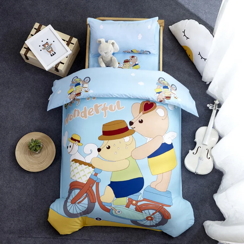 Nursery School 100% Cotton Cute Bedding Set Baby Bedsheet, 3 Piece Suit Cartoon Bedding Sets For Winter/
