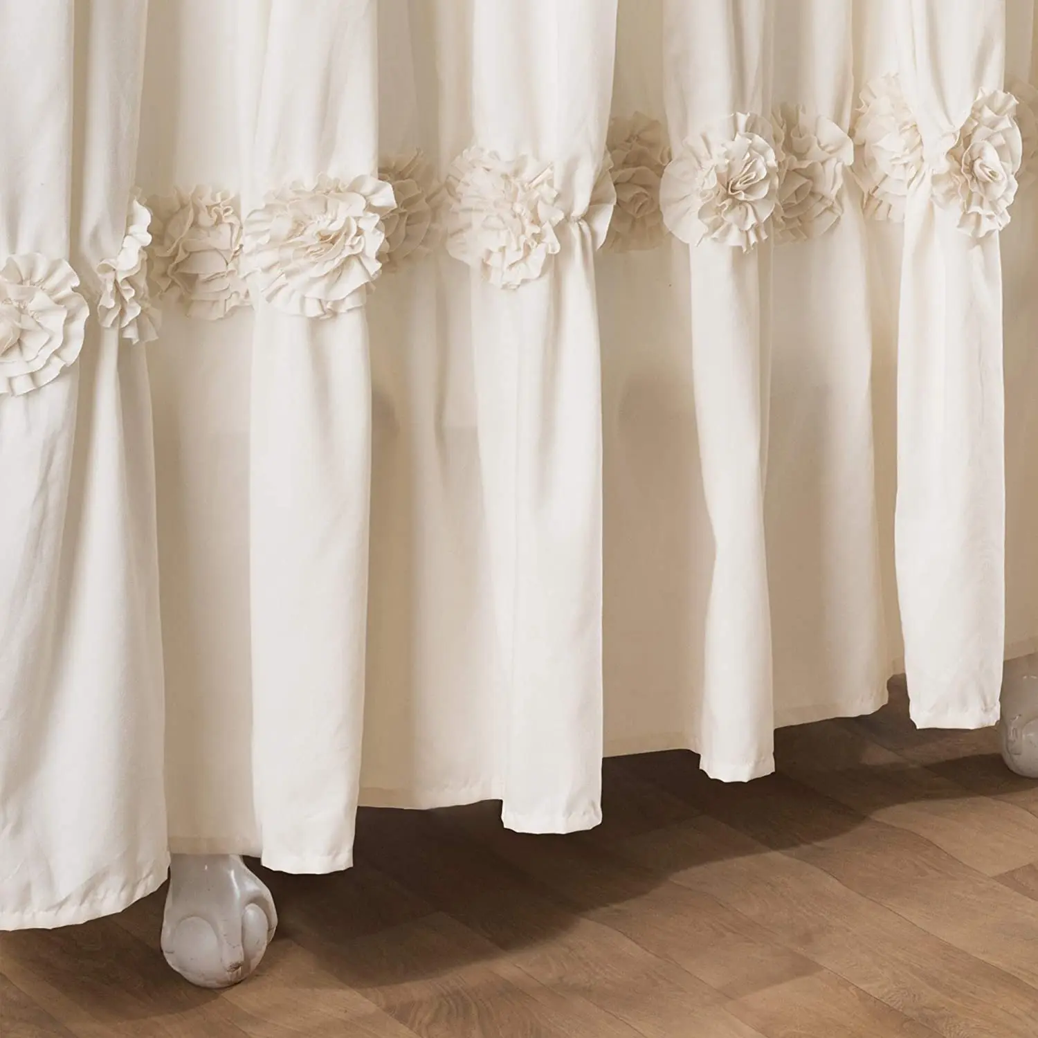 Popular Waterproof Ruched Floral Shower Curtain Bathroom Custom Modern All-season Floral Shower Curtain with Hooks