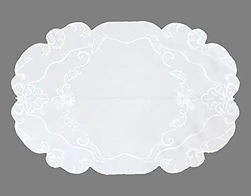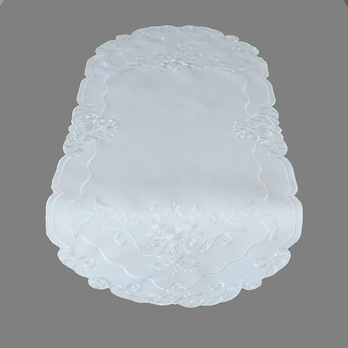 Wholesale Doilies Round or Oval Plain White Embroidered with Flowers and Tendrils Table Cloth For Kitchen Living Room