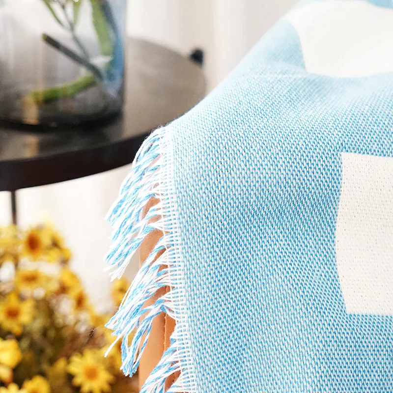 blue black Pattern Nordic Throw Blanket For Sofa cover Towel Nap Blanket With Tassels Tablecloth Home Bed Decoration/