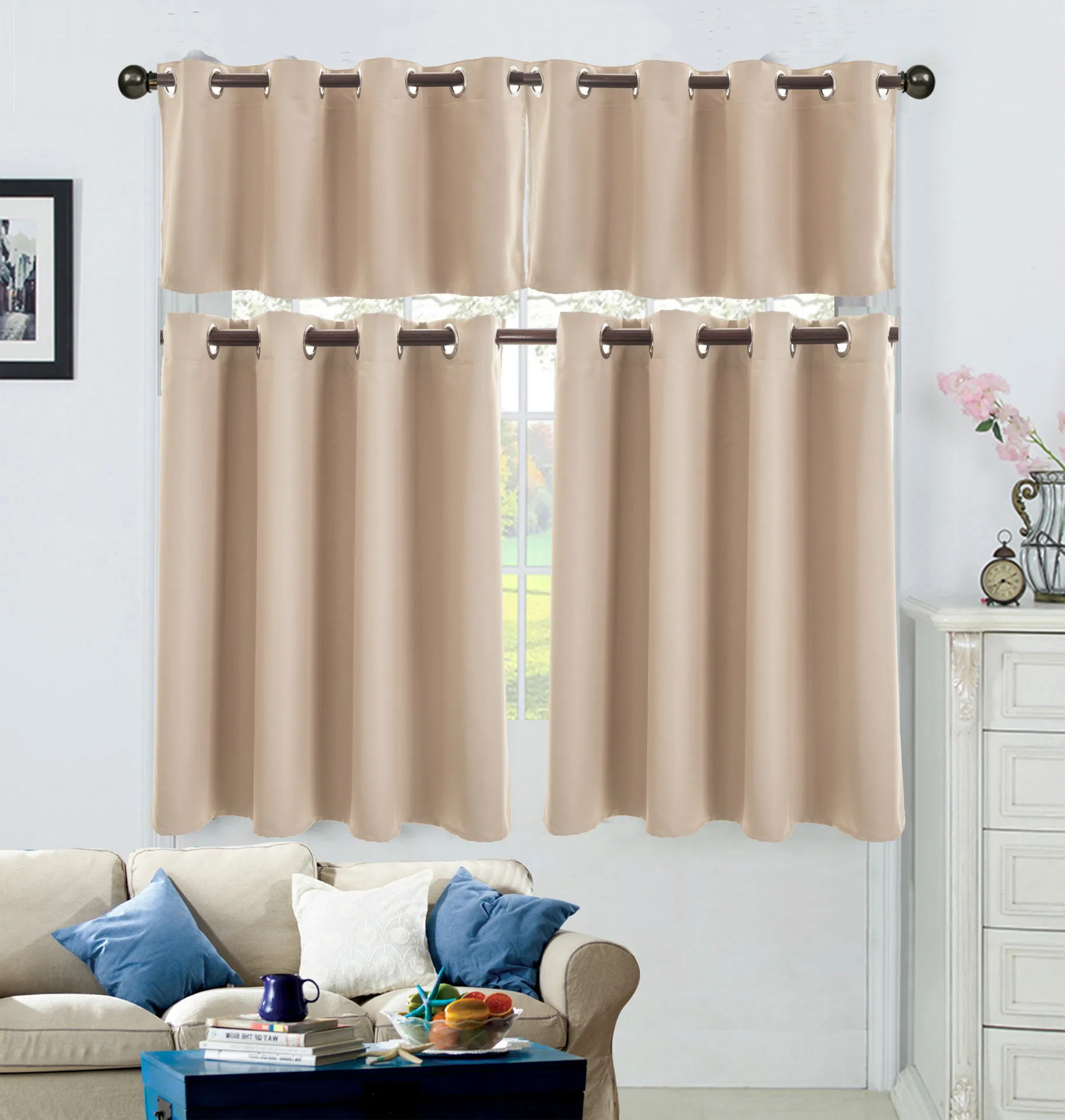 | Descriptions | made in china ready made home textile kitchen curtains set gardinen |